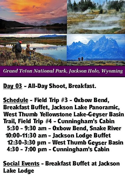 Gallery 10 - Day 03 - Sunrise Shoot at Oxbow Bend, Breakfast Buffet, Lewis Falls, West Thumb Geyser Basin Yellowstone Park, Evening Shoot Cunningham’s Cabin - 356 Photos
