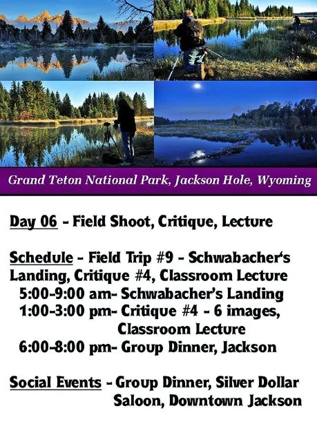 Gallery 10 - Day 06 - Morning Sunrise Shoot at Schwabacher’s Landing, Photo Critique, Lecture, Group Dinner at Silver Dollar Saloon, Jackson Hole - 40 Photos