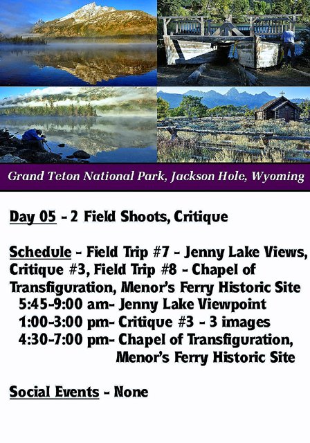 Gallery 10 - Day 05 - Morning Shoot at Jenny Lake, Photo Critique, Evening Shoots at the Chapel of Transfiguration & Menor’s Ferry Site - 120 Photos