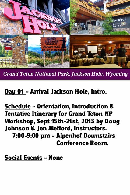 Gallery 10 - Day 01 - Arrive Jackson Hole, Wyoming, Group Meeting, Introductions, Schedule, Safety Items - 72 Photos