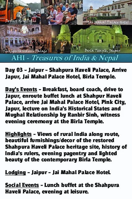 Gallery 20 - Day 03 - Breakfast Buffet, Bus Ride to Jaipur, Lunch & Tour of Shahpur Haveli Palace, Check-In Jai Mahal Palace Hotel, Evening Services at Birla Temple - 234 photos