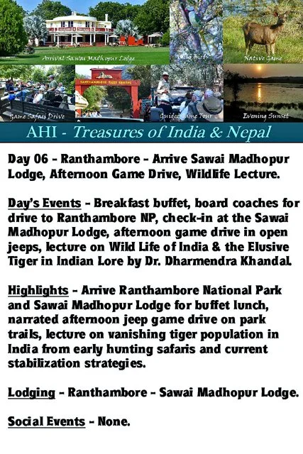 Gallery 20 - Day 06 - Depart for Ranthambore National Park, Check-In Sawai Madhopur Lodge, Buffet Lunch, Afternoon Jeep Safari Game Drive, Lecture on India Wildlife - 168 photos