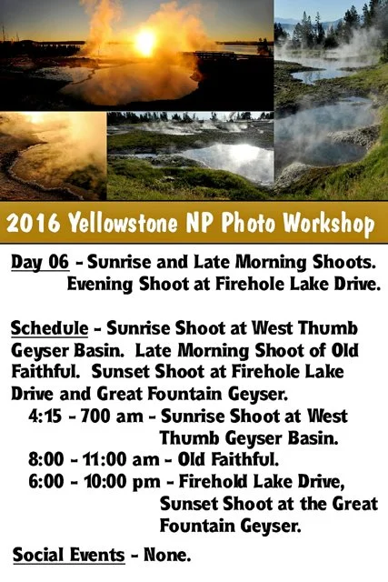Gallery 29 - Day 06 - Sunrise Shoot West Thumb Geyser Basin, Old Faithful, Firehole Lake, Great Fountain Geyser - 104 photos