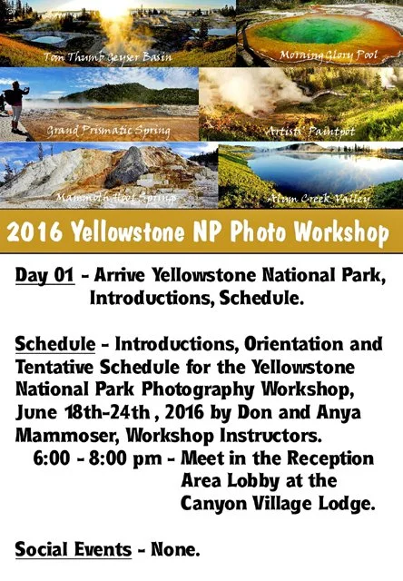 GALLERY 29 - 2016 Yellowstone National Park Photo Workshop, Canyon Village - 18- 23 June, 2016.