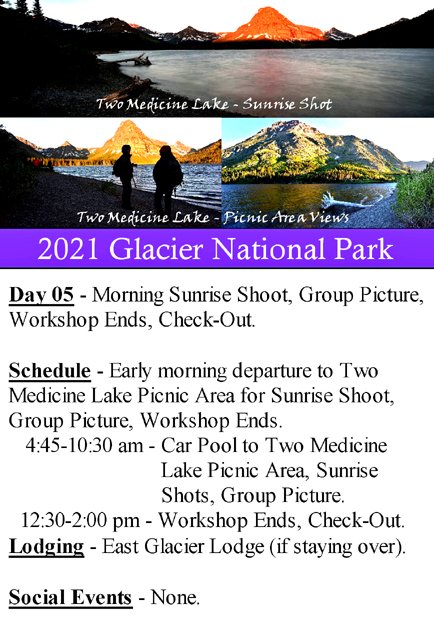 Gallery 58-03 - Day 05 - Early Morning Sunrise Shoot Two Medicine Lake Picnic Area, Group Photo, Workshop Ends - 15 photos